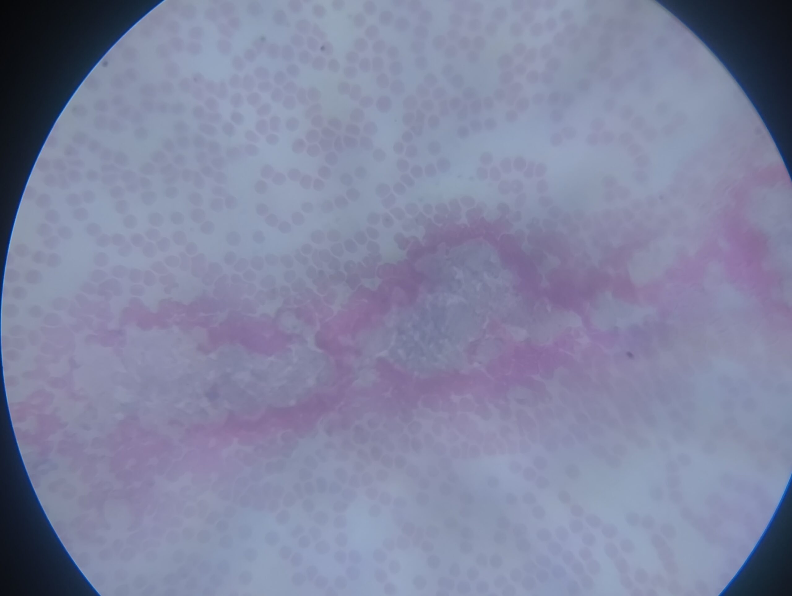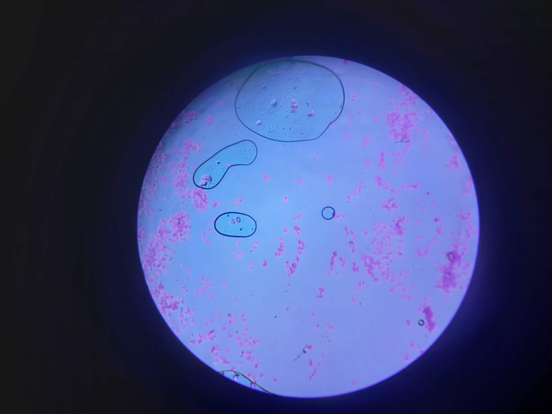 *õpilase enda suuõõne lameepiteeli rakud (roosaks värvitud rakud lillaka tuumaga)