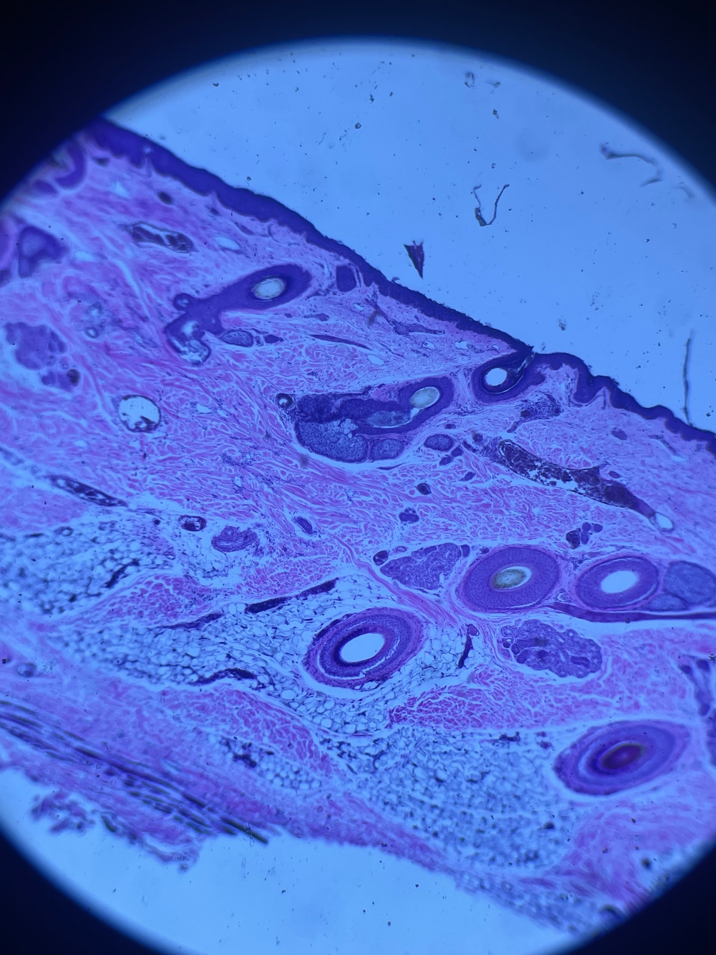*naha läbilõige (koos rasunäärmete, karvanääpsude ning karvapüsitajalihastega)