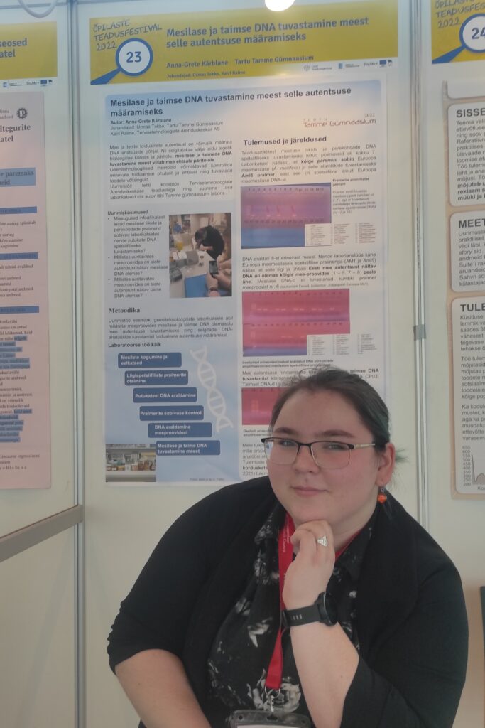 Anna-Grete uurimistöö pealkiri on “Mesilase ja taimse DNA tuvastamine meest selle autentsuse määramiseks” (juhendajad õp. U. Tokko ja Tervisetehnoloogiate Arenduskeskuse teadur K. Raime) ning Marta Helenal “Prügisukeldatud toidu ohutuse uurimine toidupatogeenide arvukuse määramise kaudu” (juhendaja õp. A. Meldre) – see töö pälvis lõppvoorus Eesti Tervisemuuseumi eripreemia.