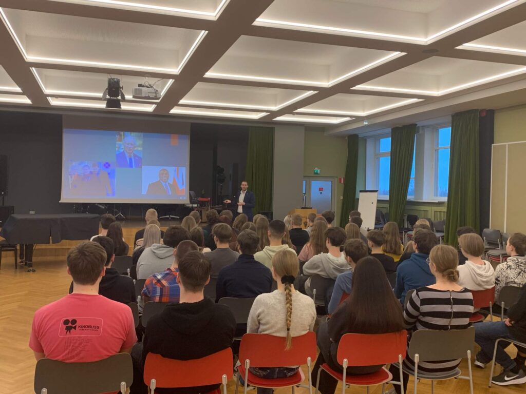 Jaanuarikuu viimasel päeval külastas Diplomaatianädala raames meie kooli Alexander Cook Briti Suursaatkonnast. Juttu tuli diplomaatiast, poliitikast, ajaloost ja muust huvitavast. Õpilastel oli suurepärane võimalus esitada küsimusi ning suhelda inglise keeles. Oli väga inspireeriv vestlus karjäärist, kultuurist ning koostööst.