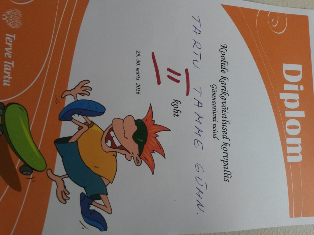 - ja 30. märtsil toimusid Tartu koolide karikavõistlused korvpallis neidudele, kus osales ka Tamme gümnaasiumi võistkond.