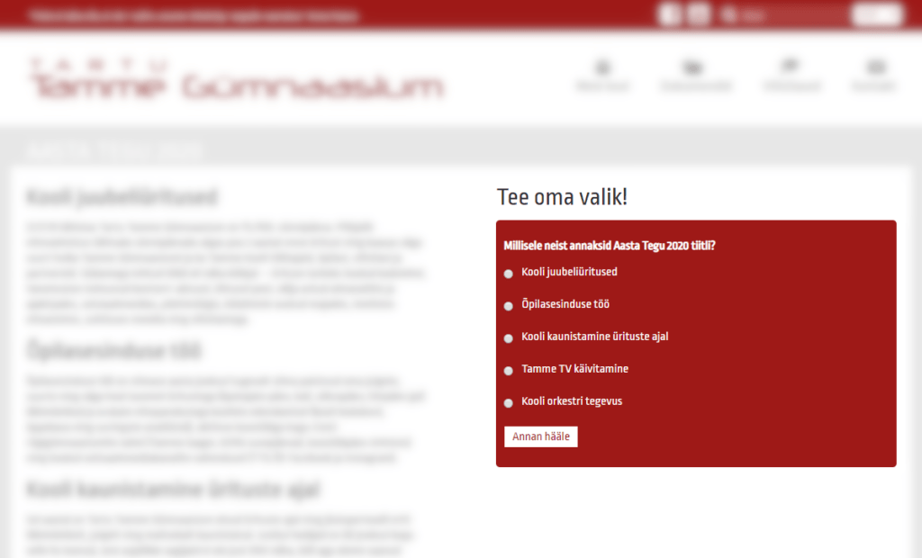 Palun loe täpsemalt ja hääleta https://tammegymnaasium.ee/aasta-tegu-2020/