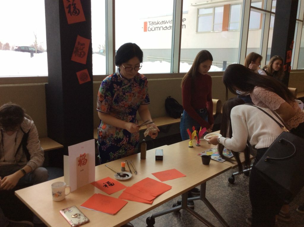 Kolmapäeval, 30. jaanuaril tähistasime aatriumis Hiina Uusaasta saabumist. Hiina keele õpetaja Li Jiangi ja tema õpilaste eestvedamisel sai koolipere maitsta tähtpäeva toite, harjutada hiina keelt ning osaleda tegevustes.