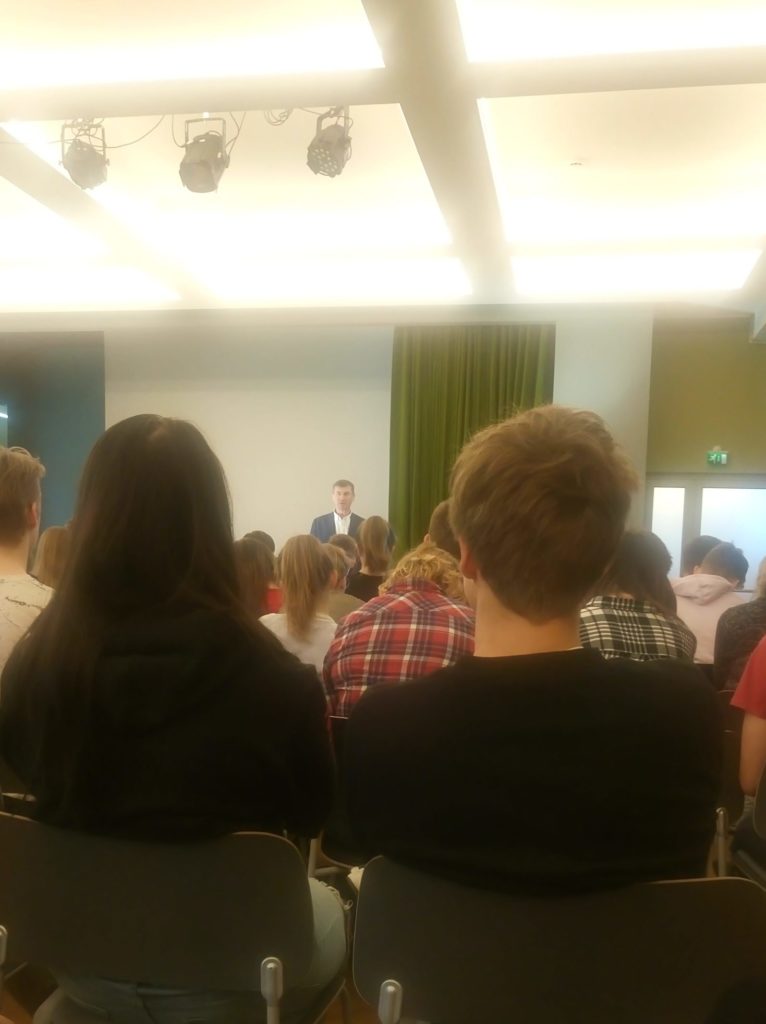 16. oktoobril toimus infotehnoloogiasuuna kõigile õpilastele tund meie kooli vilistlase ning Euroopa Komisjoni asepresidendi Andrus Ansipiga. Räägiti digitaalsest ühisturust Euroopa Liidus: saavutatud edusammudest ning praegustest tegemistest. Mõned teemad, mida käsitleti, olid rändlustasude kaotamine, tehisintellektiga seonduvad küsimused, asjade internet ja e-kaubandus. Külaline illustreeris oma juttu värvikate ja meeldejäävate näidetega. Õpilastel ja õpetajatel jagus külalisele mitmeid küsimusi. Tunni lõpus lahkuti teadmisega, et Euroopa Komisjoni asepresident ning projektirühma “Digitaalne ühtne turg” juht on muhe inimene, kes rõhutas, et oluline on püüelda oma eesmärgi poole ja saada eelkäijatest paremaks .