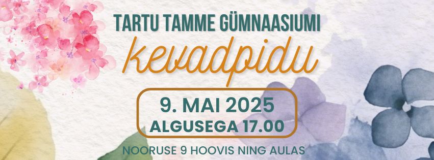Suur rõõm on kutsuda teid Tartu Tamme Gümnaasiumi kevadpeole, mis toimub reedel, 9. mail algusega kell 17.00 koolihoovis aadressil Nooruse 9.