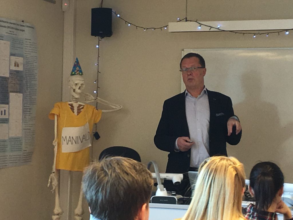 Prof. Maimets rääkis 11. meditsiiniklassi bioloogiatunnis, kuidas kasutatakse erinevaid geeniteraapia meetodeid tänapäeva meditsiinis. Jutuks oli, kuidas saadakse geeniteraapiaks vajalikud rakud, millised bioeetika probleemid sellega kaasnevad, missugused on Euroopa Liidus lubatud ravimid ning millistel tingimustel ravimile müügiluba antakse. Huvitava tunni käigus teadussaavutuste kaasaegsest rakendamisest said õpilased maailmatasemel asjatundjale loomulikult ka küsimusi esitada.