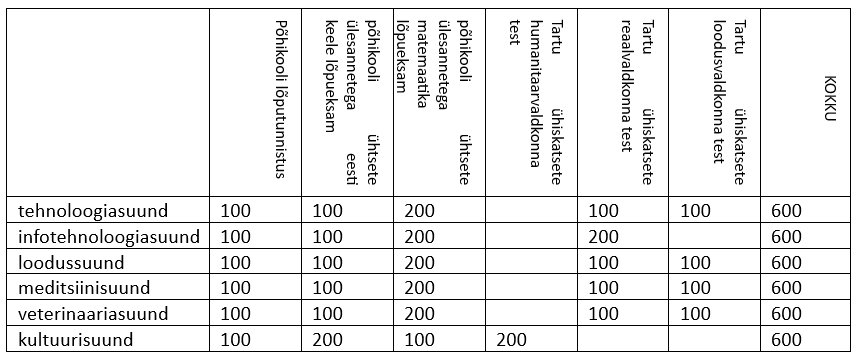 2) matemaatika lõpueksami tulemus 0–100 punkti. Matemaatika lõpueksami puhul arvestatakse punktidena eksamitulemuse protsentuaalset väärtust (eksamil on maksimaalselt võimalik saada 50 punkti).