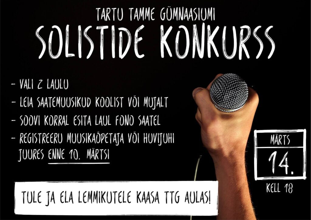 14. märtsil kell 18.00 toimub Tartu Tamme Gümnaasiumi solistide konkurss