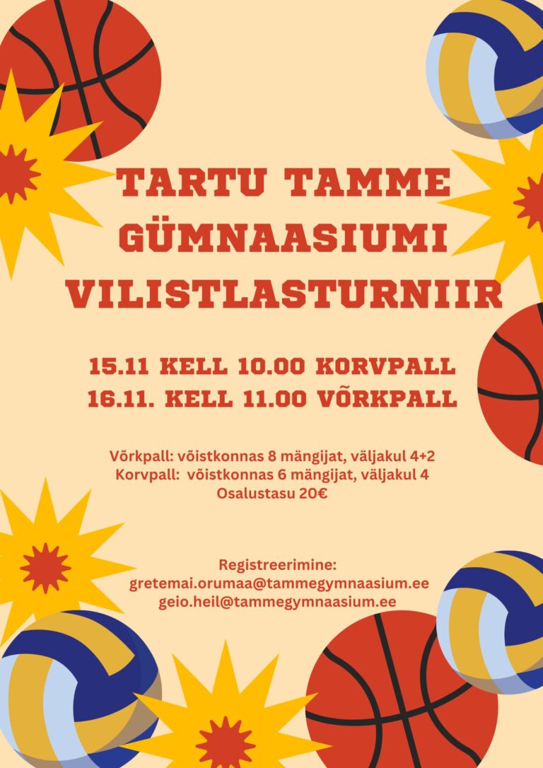 Sellel aastal on plaanis korraldada vilistlasturniirid nii korvpallis kui ka võrkpallis ning selleks peaksite hakkama komplekteerima oma võistkondi. 15.11 kell 10.00 – korvpalliturniir (võistkonnas max